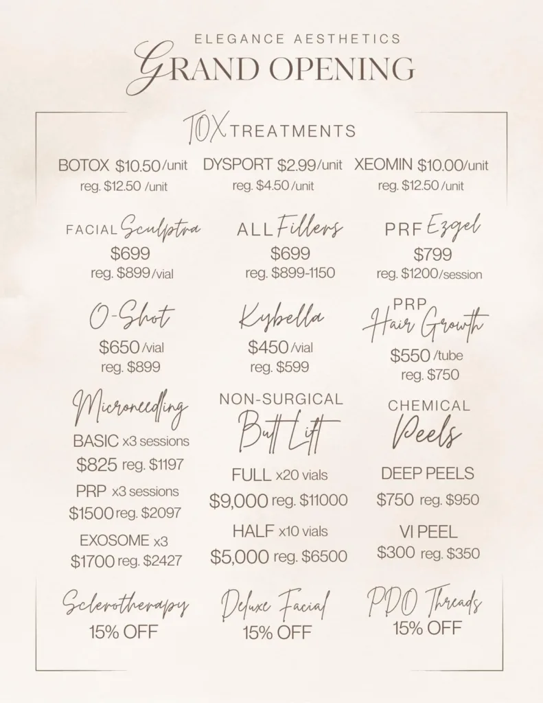✨ Grand Opening Specials Are Here — discounted on injectables, fillers, PRF, microneedling packages, peels, and specialty treatments. ✨ Book Now!